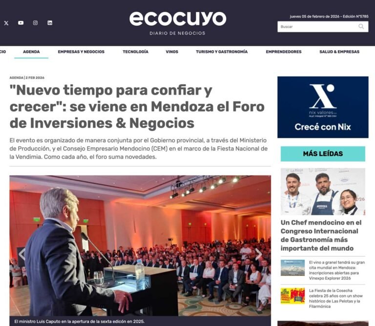 El evento es organizado de manera conjunta por el Gobierno provincial, a través del Ministerio de Producción, y el Consejo Empresario Mendocino (CEM) en el marco de la Fiesta Nacional de la Vendimia. Como cada año, el foro suma novedades.