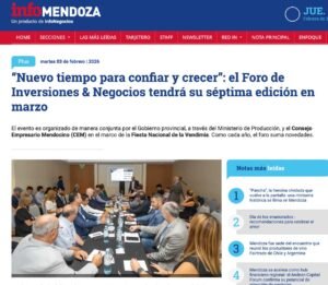 A new time to trust and grow’: the Investment & Business Forum will hold its seventh edition in March The event is jointly organised by the provincial government, through the Ministry of Production, and the Mendoza Business Council (CEM) as part of the National Harvest Festival. As every year, the forum adds new features.