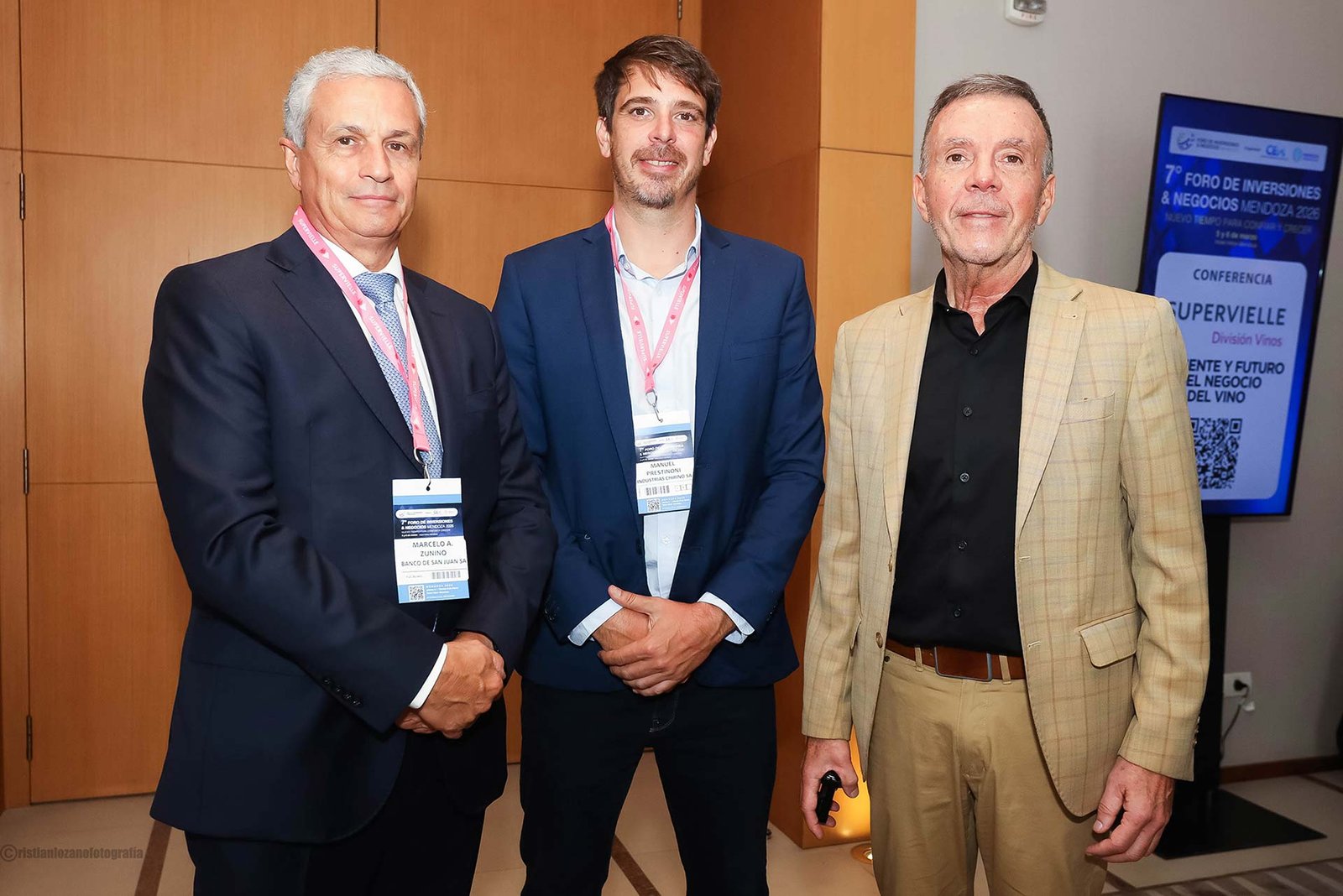 Martín Clément, Presidente del Consejo Empresario Mendocino, Alfredo Cornejo, Gobernador de la Provincia de Mendoza and Luis Caputo, Ministro de Economía de la Nación Argentina.