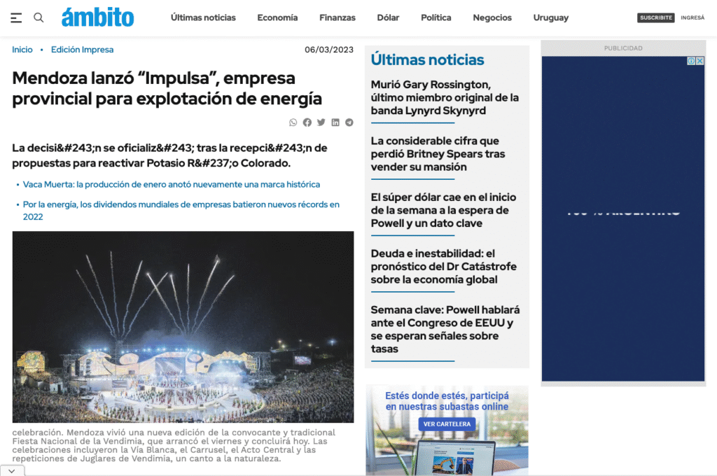 El gobernador Rodolfo Suarez anunció la creación de la empresa de energía Impulsa Mendoza SA, en momentos en que la provincia avanza con la extracción de potasio y la exploración en el área de Vaca Muerta.