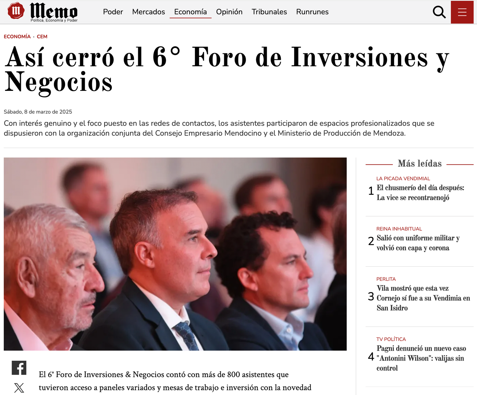 Se trata del foro de Inversiones & Negocios. Fue destacada la participación de empresarios y emprendedores que buscaron fortalecer el ecosistema de Mendoza y el desarrollo económico en general.