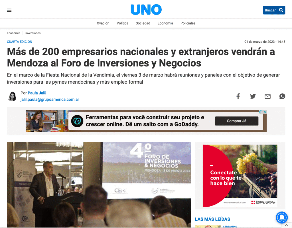 Más de 200 empresarios nacionales y extranjeros vendrán a Mendoza al Foro de Inversiones y Negocios